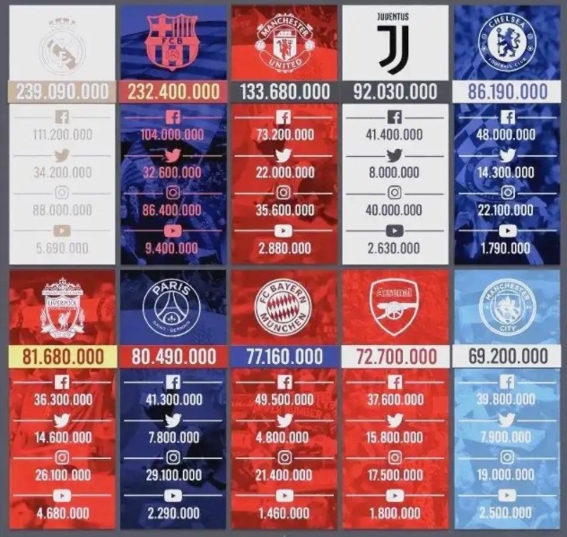 头部俱乐部的粉丝数量远逊于头部球星,这是一个“人迷”大于“队迷”的时代,球员“要挟”球队的行为或将越来越多。