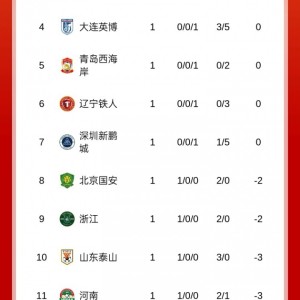 03月08日讯 中超首轮全部比赛战罢,新赛季第一轮排名出炉。【相关新闻】官方:申花、津门虎被罚10分,海牛被罚7分;泰山...