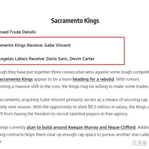 完美电竞赛事中心-FW支招湖人做1换2交易,可送文森特去国王,尝试捡漏3+1后卫?